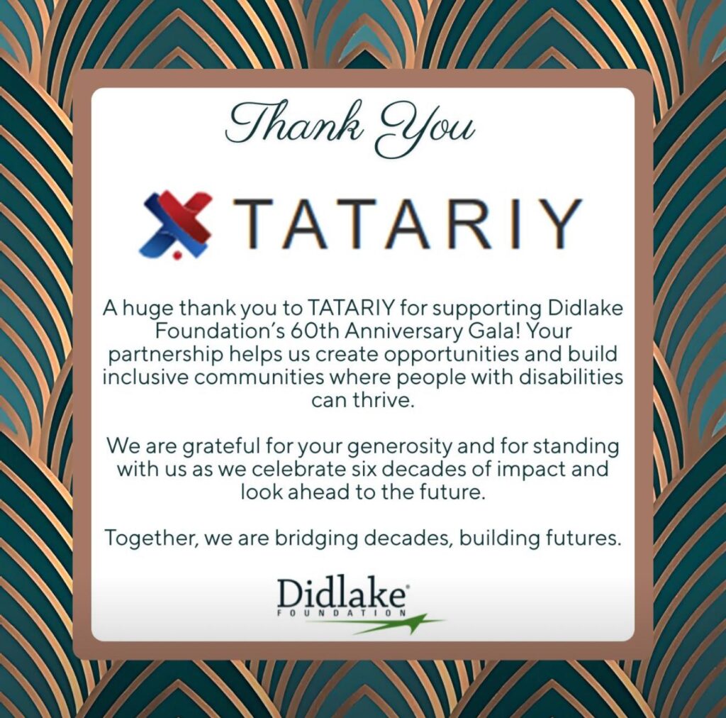 At TATARIY, people are at the heart of every solution we deliver. Our recent sponsorship of Didlake Foundation’s 60-Year Gala reflects that core belief, that progress is most meaningful when it’s shared, inclusive, and rooted in purpose.